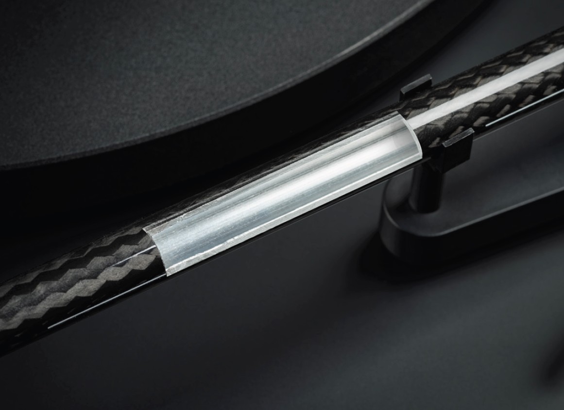 Debut Reference 10 er utstyrt med en ny 10" one-piece carbon-aluminium tonearm. Ytterlaget i karbonfiber gir høy stivhet og presis bevegelse i pickupen, mens det indre aluminiumrøret bidrar til effektiv demping av resonanser og vibrasjoner.